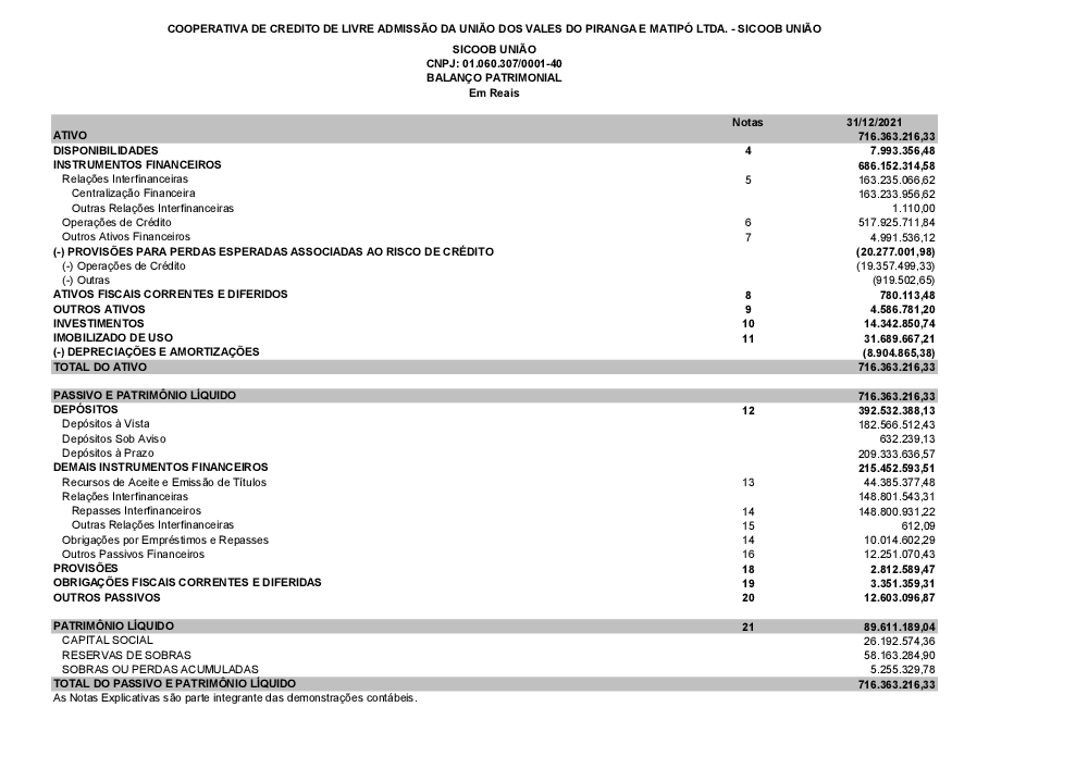 COOPERATIVA DE CRÉDITO DE LIVRE ADMISSÃO DA UNIÃO DOS VALES DO PIRANGA E MATIPÓ LTDA. – SICOOB UNIÃO DOS VALES