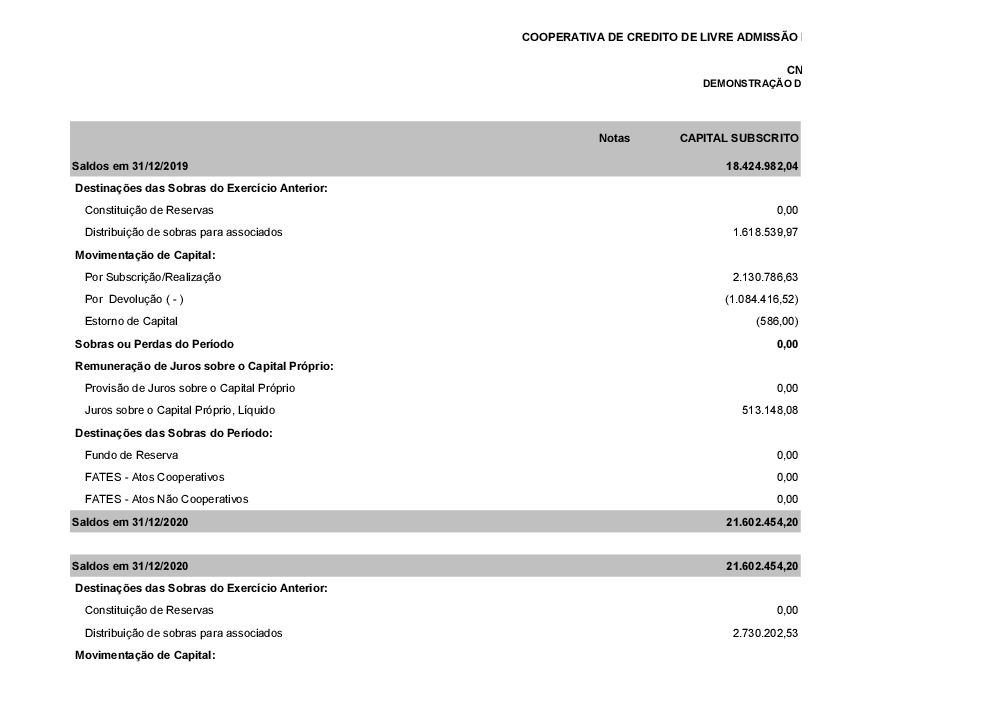 - d) Demonstrativo das sobras apuradas da sociedade no exercício de 2024.