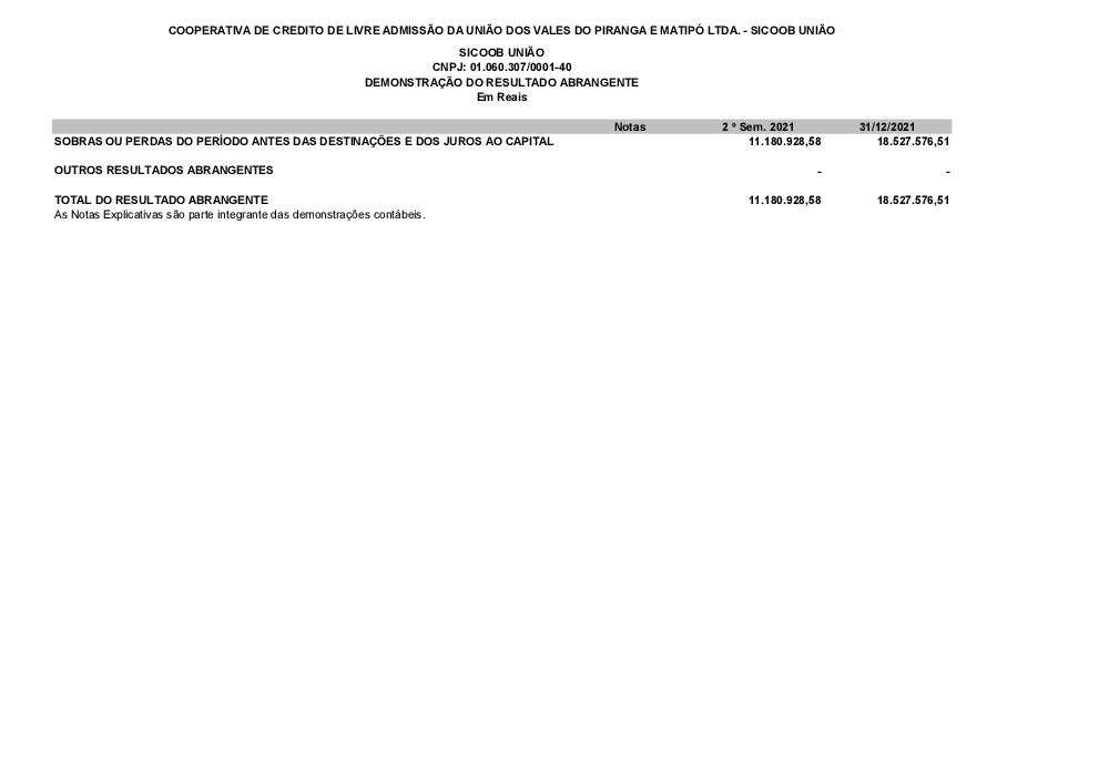 - c) Relatório da auditoria independente – Confederação Nacional de Auditoria Cooperativa – CNAC;