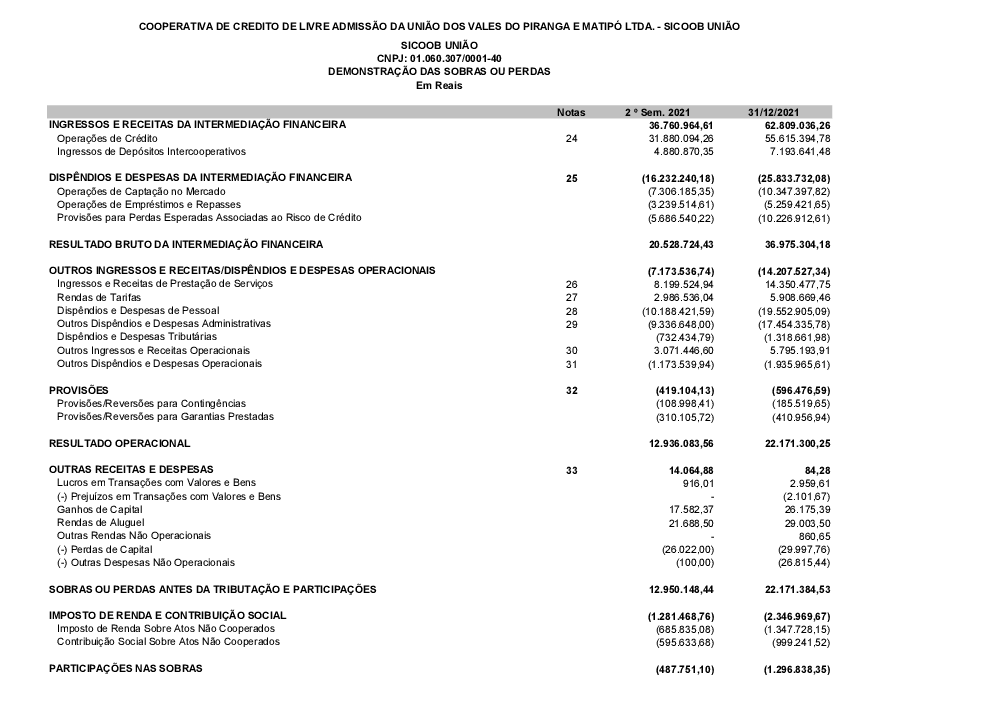 - d) Demonstrativo das sobras apuradas da sociedade no exercício de 2024.