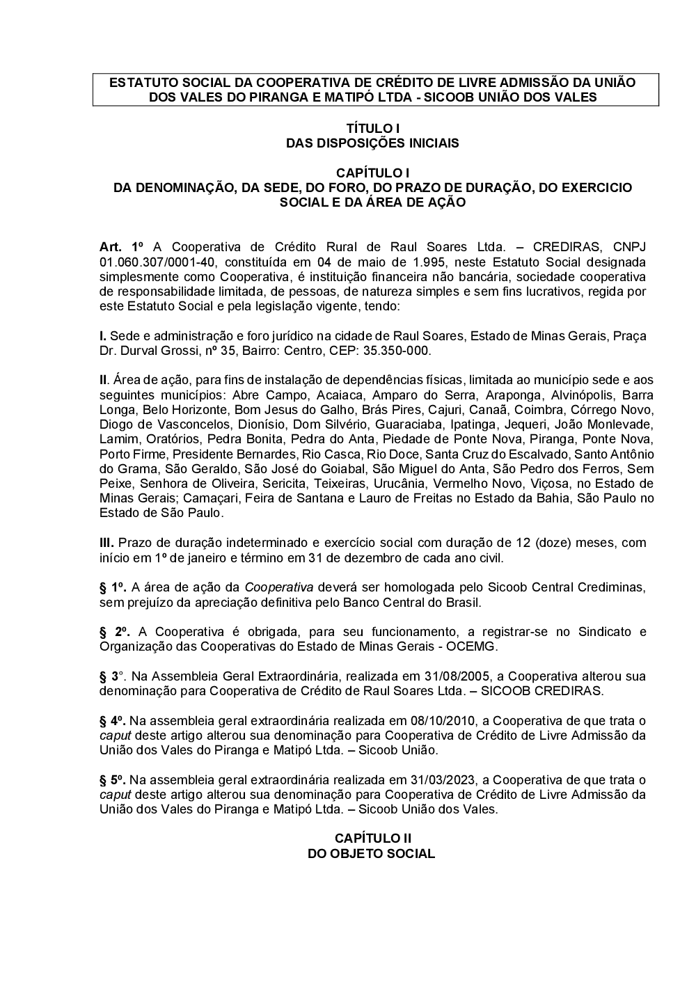 Estatuto Social Sicoob União dos Vales