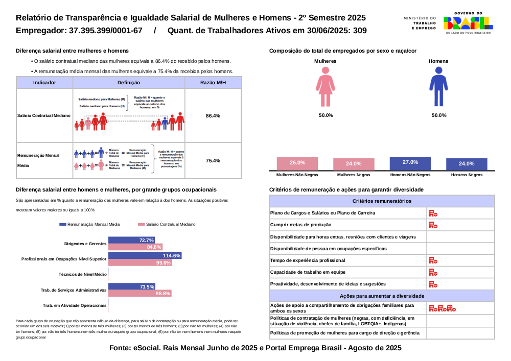 Relatório de Transparência e Igualdade Salarial de Mulheres e Homens - 2º semestre de 2025