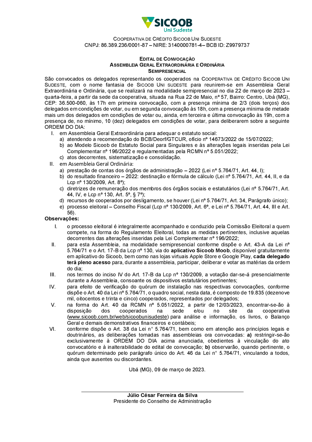 EDITAL DE CONVOCAÇÃO - ASSEMBLEIA GERAL EXTRAORDINÁRIA E ORDINÁRIA 2023