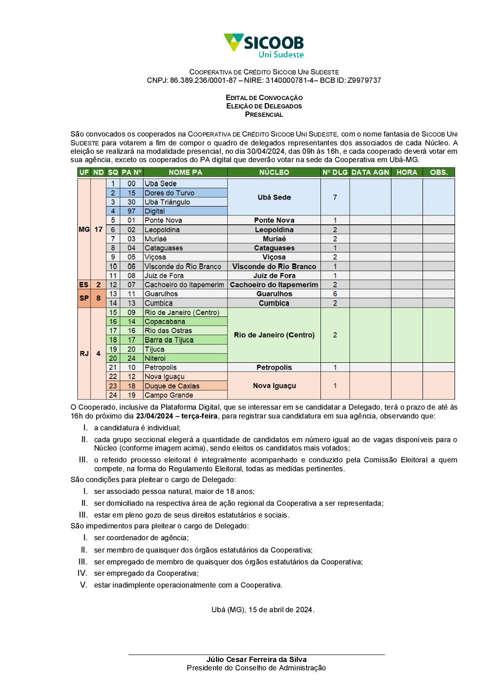Calendário Eleitoral - Delegados 2024