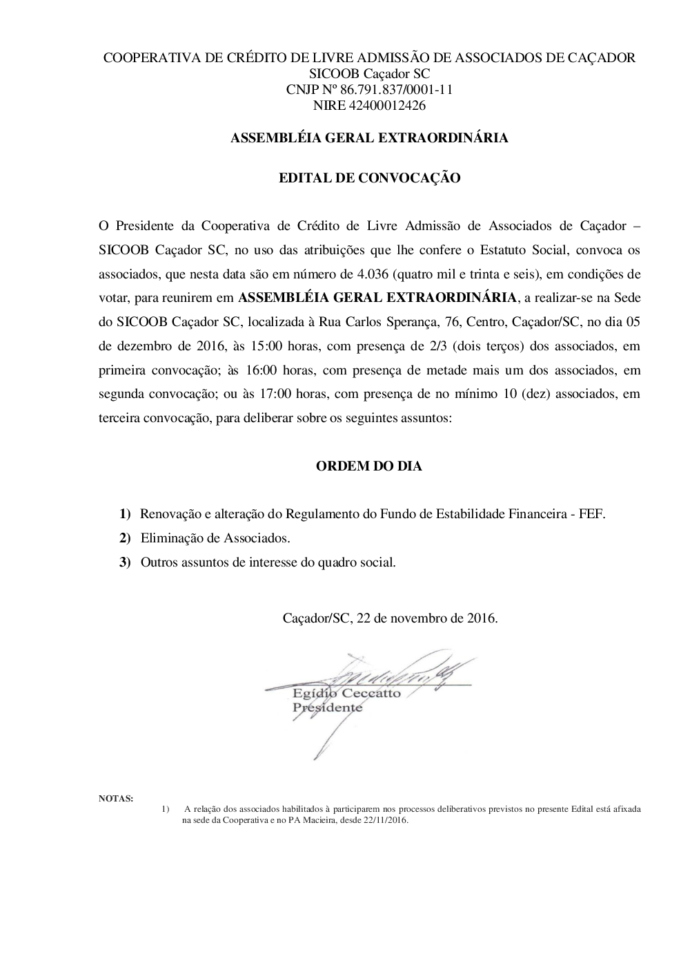 COOPERATIVA DE CRÉDITO _________ (denominação social completa)