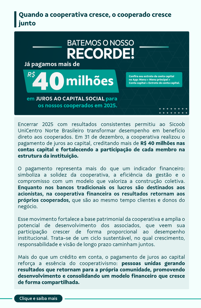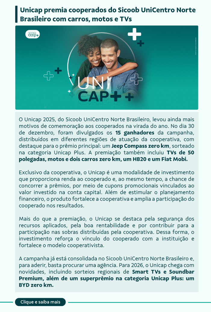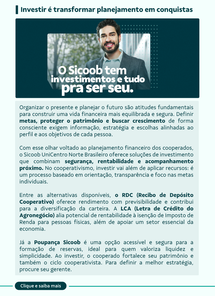 O Sicoob em Foco é a newsletter oficial do Sicoob UniCentro Norte Brasileiro, criada para manter nossos cooperados sempre informados, com conteúdo estratégico, relevante e fácil de acompanhar.