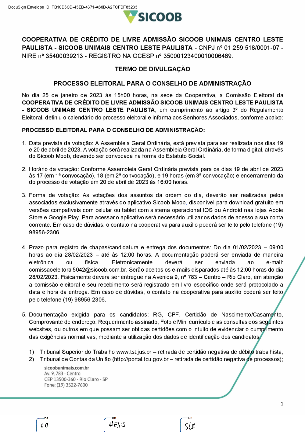 Assembleias - Sicoob UniMais Centro Leste Paulista