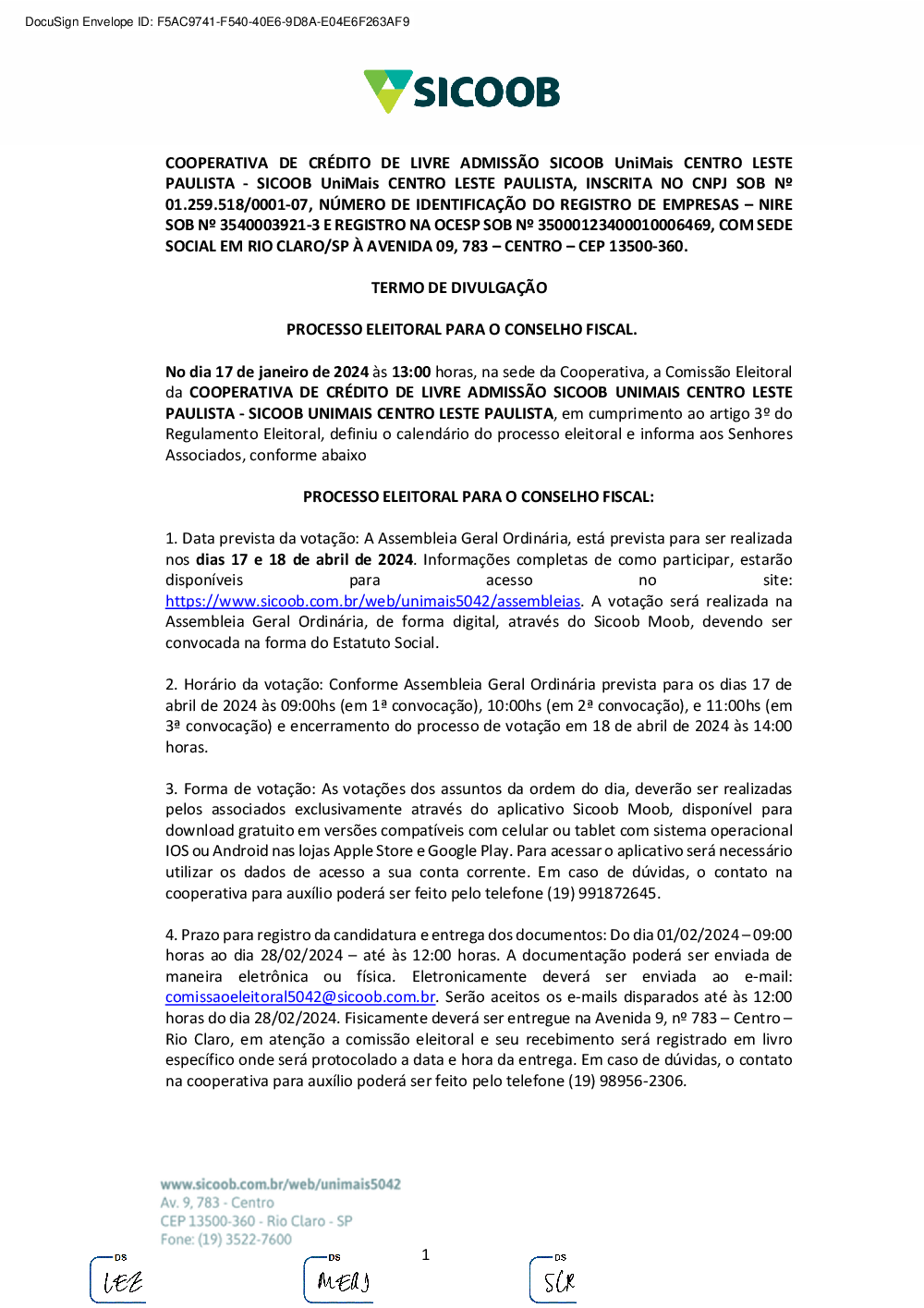 Assembleias - Sicoob UniMais Centro Leste Paulista