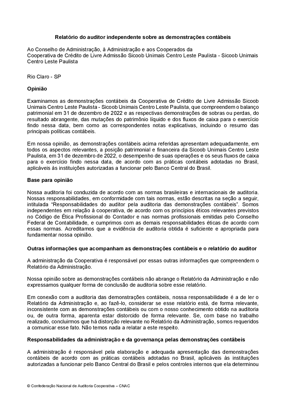 Relatórios - Sicoob UniMais Centro Leste Paulista