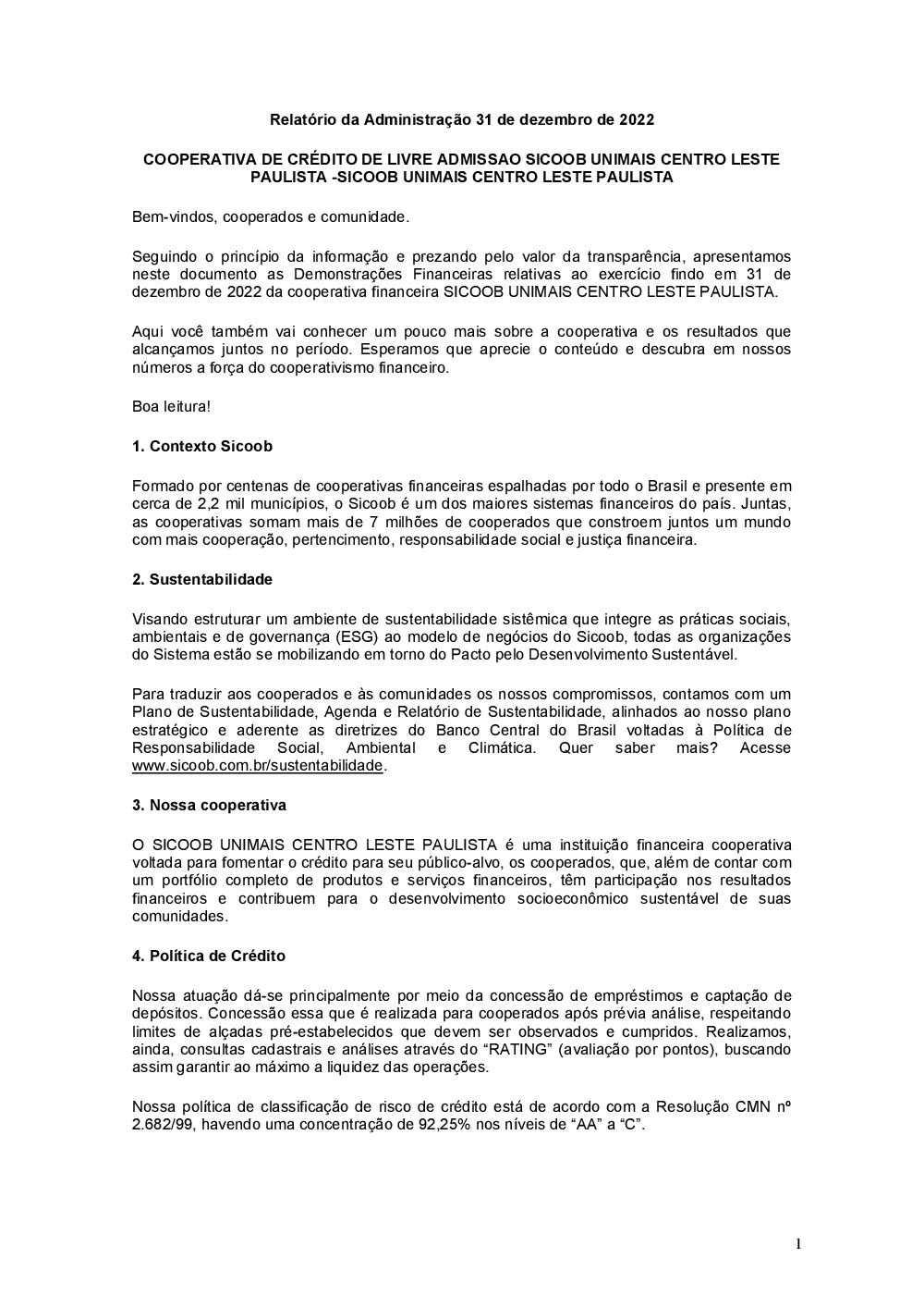 Relatórios - Sicoob UniMais Centro Leste Paulista